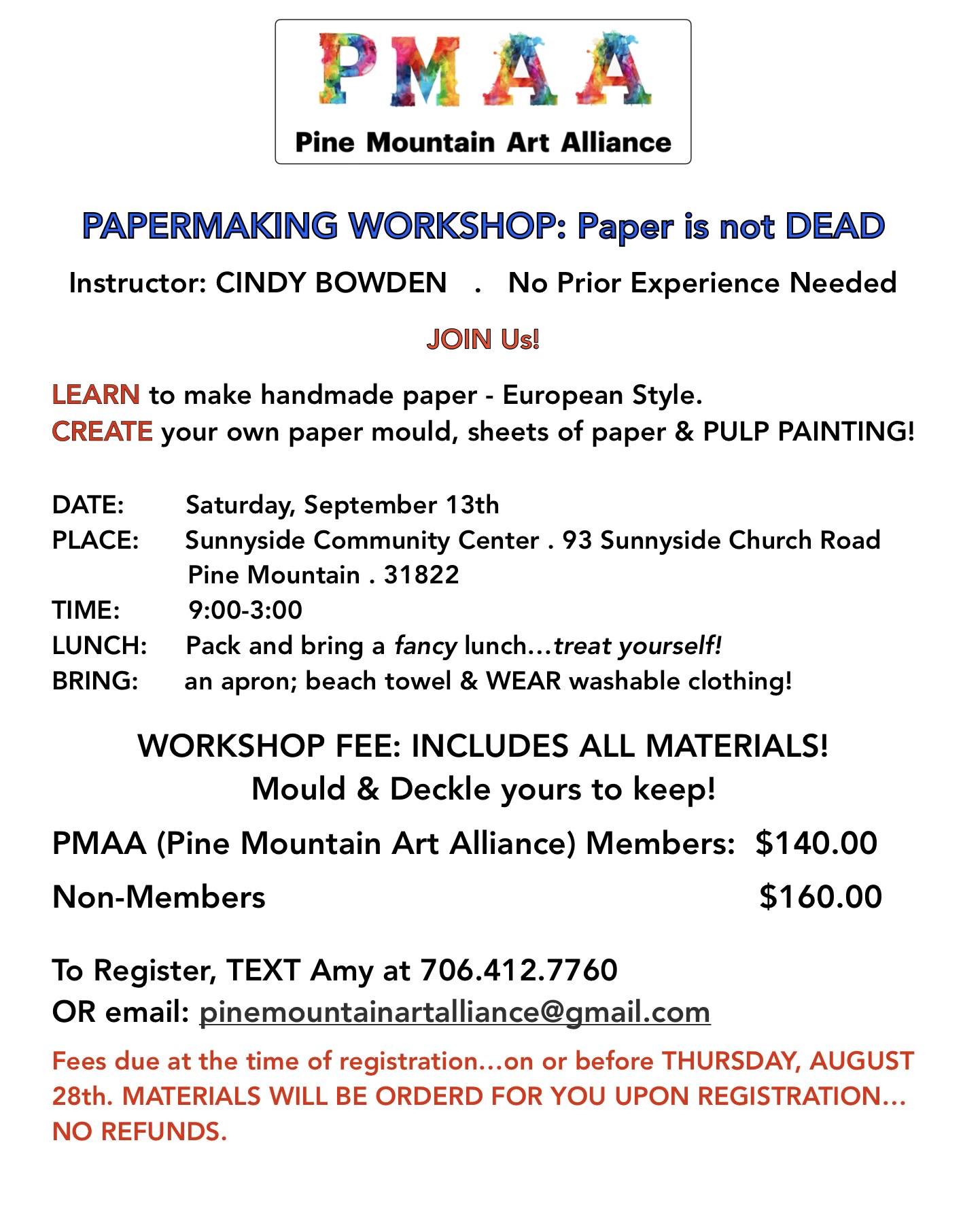 • “Paper is Not Dead” Papermaking Workshop – Pine Mountain Art Alliance