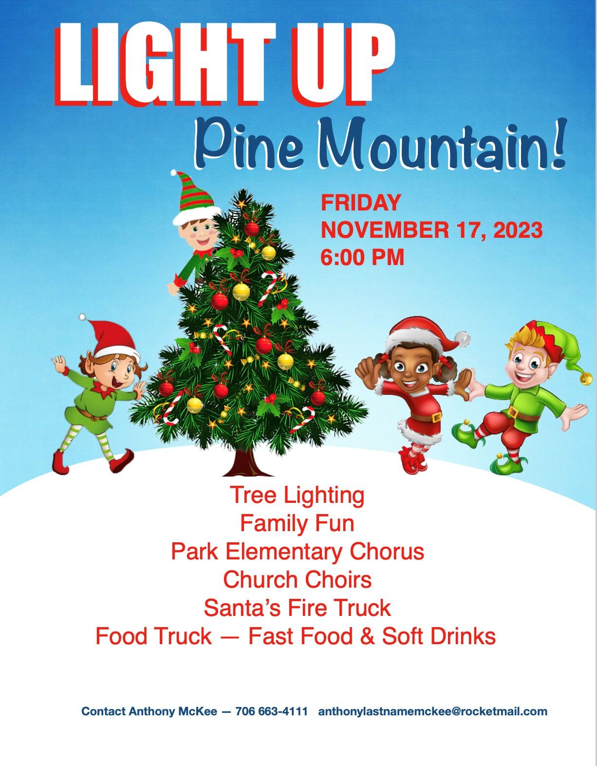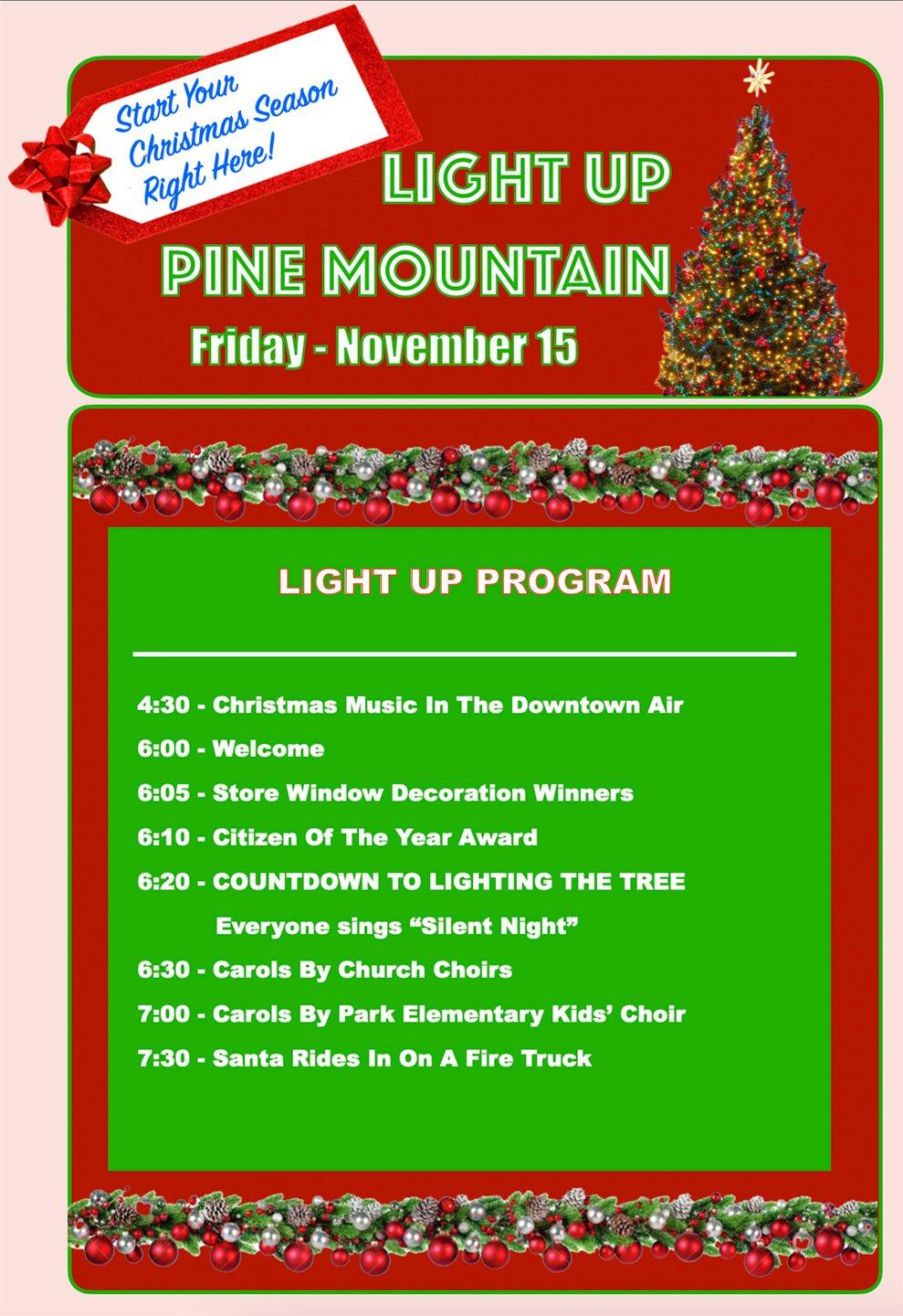 We hope you'll join us downtown! Christmas music in downtown starts at 4:30. Event starts at 6:00. Christmas carol concerts by: - Kid’s choir - Three church choirs - Santa’s arrival aboard a large fire truck and his visit with children - Announce winners of shop window decorating competition - Announce the 2024 Pine Mountain […]